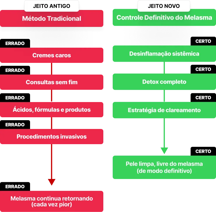 Com o Controle Definitivo do Melasma você tem um protocolo que resolve a causa raiz das manchas para eliminar o melasma de forma progressiva e duradoura, sem cremes agressivos e sem procedimentos estéticos caros.